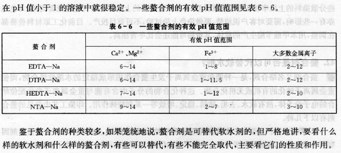 由上述螯合劑的種類(lèi)可知,軟水劑A和軟水劑8是屬于氨基羧酸類(lèi)螯合劑中的品種之一,因此,這類(lèi)螯合劑可以取代軟水劑。但軟水劑中,如六偏磷酸鈉等和軟水劑A和軟水劑8,它們的性質(zhì)和軟水作用還有肯定區(qū)別。六偏磷酸鈉等軟水劑的軟水作用,只是離子交換。軟水劑A