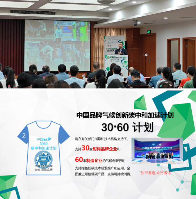 中國(guó)紡織工業(yè)聯(lián)合會(huì)社會(huì)責(zé)任辦公室副主任胡柯華先生,在會(huì)議上針對(duì)GreenHUB紡織行業(yè)綠色低碳循環(huán)轉(zhuǎn)型項(xiàng)目進(jìn)行了介紹。本項(xiàng)目是由中國(guó)紡織工業(yè)聯(lián)合會(huì)社會(huì)責(zé)任辦公室在中國(guó)紡織信息中心、HSBC匯豐銀行、WWF世界自然基金會(huì)的支持下,共同開發(fā)的GreenHUB綠色技術(shù)創(chuàng)新加速平臺(tái),為中國(guó)品牌氣候創(chuàng)新碳中和加速計(jì)劃(30?60計(jì)劃)打造行業(yè)基礎(chǔ)設(shè)施。胡主任在分享中介紹了氣候創(chuàng)新2030行動(dòng)紡織業(yè)的行動(dòng)目標(biāo)與路線圖,并結(jié)合我國(guó)“雙碳”目標(biāo)以及中國(guó)紡織服裝行業(yè)碳排放整體情況,對(duì)30?60計(jì)劃進(jìn)行了全面介紹。同時(shí)胡主任透露,在2023年還將舉辦5場(chǎng)紡織服裝行業(yè)氣候友好型技術(shù)分享會(huì)。