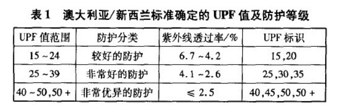 UPF值大于50時(shí),標(biāo)識(shí)為50+。此標(biāo)準(zhǔn)適用于任何織物,但要求注明“長(zhǎng)期使用及在拉伸狀態(tài)或潮濕態(tài)下使用會(huì)降低防紫外線性能”。