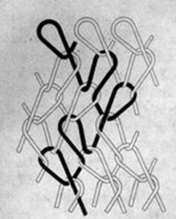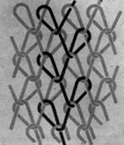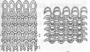 針織物物的結(jié)構(gòu)是紡紗線彎曲成圈,縱向串套、橫向連接的紡紗線集合體。針織物物的基本構(gòu)成單元是線圈,線圈橫向連接的是緯編針織物物的結(jié)構(gòu)特征,線圈縱向連接的是經(jīng)編針織物物的結(jié)構(gòu)特征。