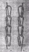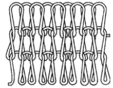 每根經(jīng)紗始終繞同一枚針墊紗成圈,形成一根連續(xù)的線圈鏈,分開口編鏈和閉口編鏈兩類。編鏈組織結(jié)構(gòu)緊密,縱向延伸性小,不易卷邊。一般和其他組織層壓織成針織物物,可以限制織物縱向延伸性和提高尺寸穩(wěn)定性。