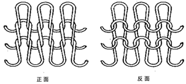 在經(jīng)平組織中,同一根紡紗線所形成的線圈交替排列在相鄰兩個(gè)縱行線圈中??椢锏恼疵娑汲尸F(xiàn)菱形的網(wǎng)眼,由于線圈呈傾斜狀態(tài),織物縱、橫向都具有肯定的延展性。它大的缺點(diǎn)是逆編結(jié)方向簡單脫散,當(dāng)一個(gè)線圈斷裂時(shí)織物易沿縱行分別成兩片。