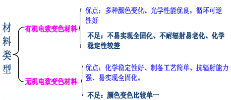 電致變色材料在外加電場作用下發(fā)生電化學氧化還原反應,得失電子,使材料的顏色發(fā)生變化。