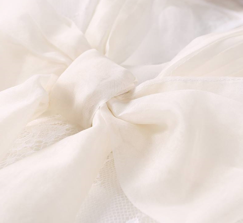 真絲歐根紗布質(zhì)偏硬且堅(jiān)挺,據(jù)此特性常用它來制作婚紗禮服等高端工作裝,間或也會(huì)看到用歐根紗來制作一些時(shí)裝或者工作裝的配飾。