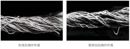 特征:外形似單紗,結構似線,表面毛羽較環(huán)錠紗少,截面近似圓形。