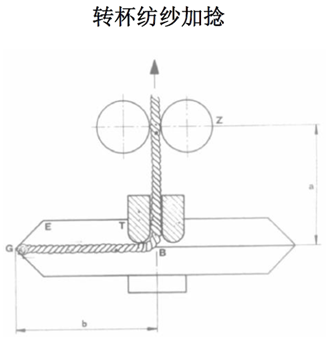 利用搓輥的往復休閑對兩根須條實施同向加捻,靠須條自身的退捻力矩相互反卷在一起,形成一個雙股的穩(wěn)定結構的紗,屬非自由端紡紗。