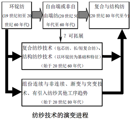 主要指在環(huán)錠紡紗機上通過短/短、短/長纖維加捻成的層壓紗和通過單須條分束或須條集聚方式得到的紗。