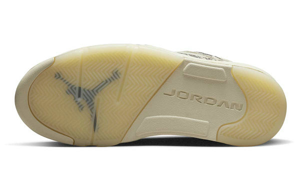 這款 Air Jordan 5 以“Expression”命名,同時(shí)鞋面以絨面革搭配黑灰色抽象涂鴉覆蓋,亮銀色勾邊鯊魚齒中底、奶白色半透?jìng)?cè)網(wǎng)和外底等細(xì)節(jié)更是突出了 Vibe 風(fēng)高級(jí)感。