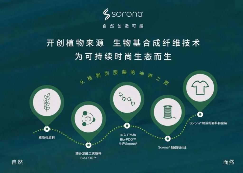 SORONA®是一項突破性的新型生物基聚合物解決方案,其核心原料來自每年可重復(fù)生長的植物。SORONA®不僅具有符合國際潮流的可持續(xù)發(fā)展和環(huán)保主題,而且可以為纖維帶來多種功能的優(yōu)良特性。用SORONA®原料制成的纖維的“多功能性”為面料和服裝設(shè)計師提供了更大范圍的設(shè)計自由!