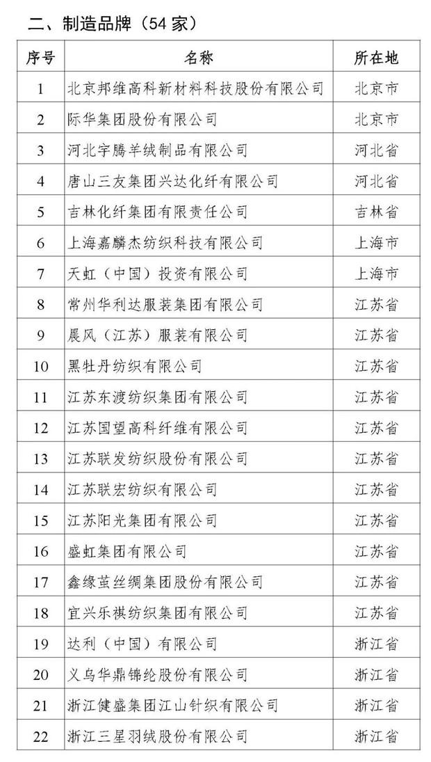 重點培育紡織服裝百家品牌名單(2022版)的通知