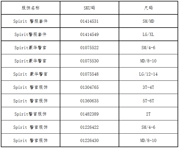 此次召回產品涉及以下警服套裝中的警帽。不包含在召回范圍內的產品可通過帽子內的標簽來識別,標簽上有“Made in China”的字樣。受影響的產品不包含此標簽。