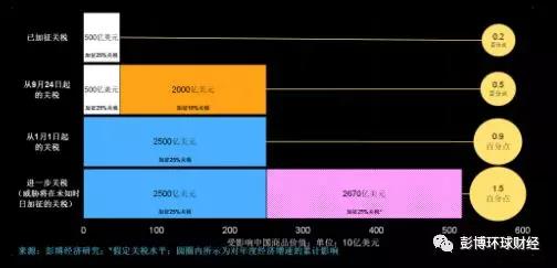 在周一發(fā)布的聲明中,特朗普命令政府于9月24日起對約2000億美元中國商品加征10%關稅,如果中國不在貿易問題上讓步,將自明年1月起把稅率提高一倍以上。在此之前,美國已經對大約500億美元中國商品加征25%關稅,并招致中國對500億美元美國商品的關稅報復。