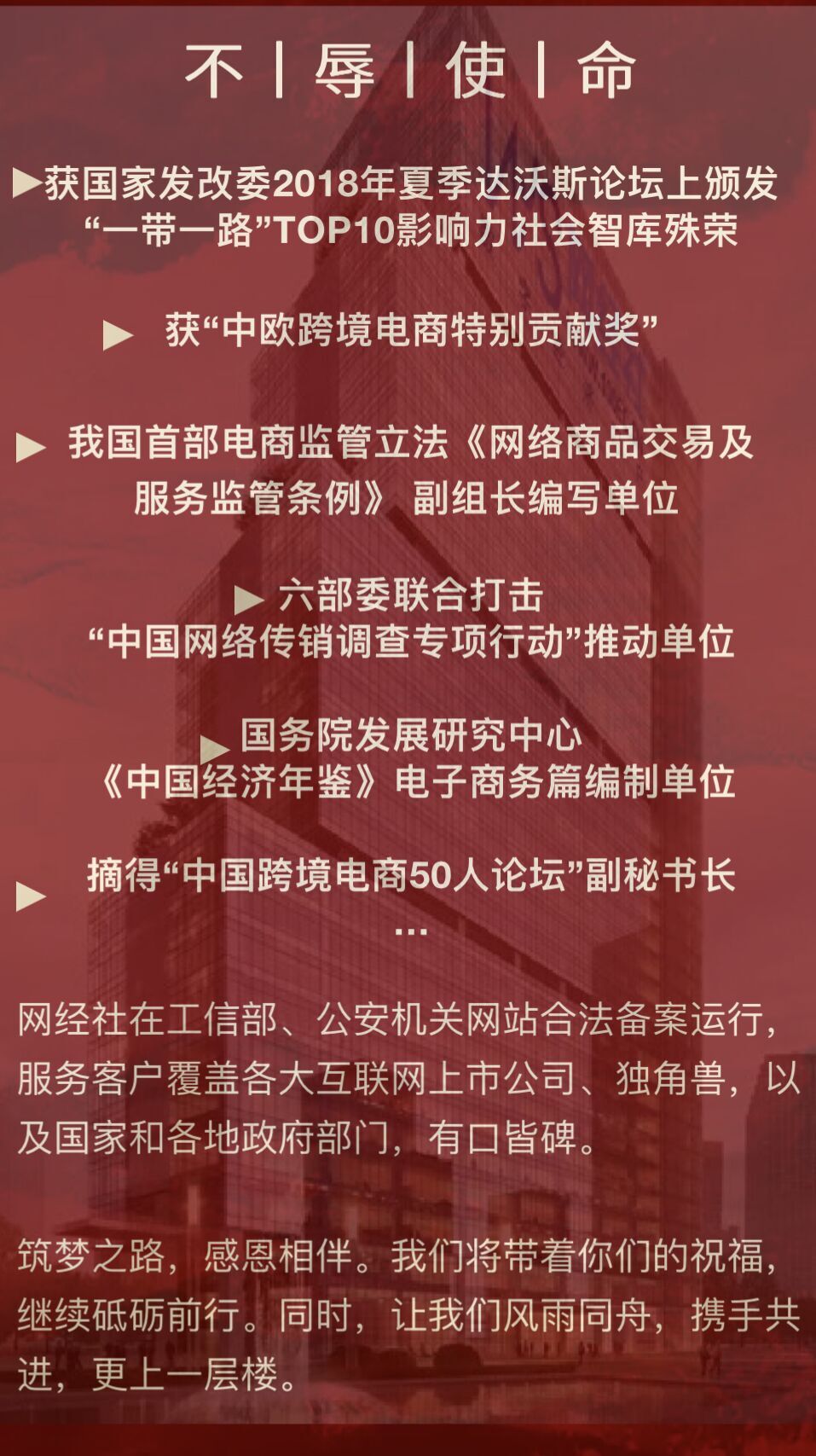 十余年的奮進(jìn),也讓網(wǎng)經(jīng)社獲得政府、企業(yè)、機(jī)構(gòu)、高校等多方的認(rèn)可。這些年來,我們分別摘得了有關(guān)部委在2018年夏季達(dá)沃斯論壇上頒發(fā)的我國“一帶一路”TOP10影響力社會(huì)智庫、“中歐跨境電商特別貢獻(xiàn)獎(jiǎng)”、“中國跨境電商50人論壇”副秘書長等殊榮。