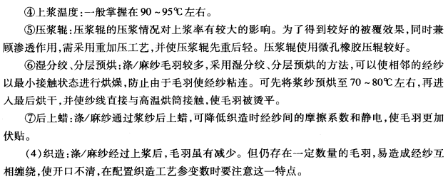 (3)紡紗線捻度:為了減少紗條毛羽,提高成紗完潔度,增加纖維間的抱合力,紗的捻度可適當(dāng)提高,一般超過臨界捻系數(shù)10%左右。同時(shí)也提高了織物的挺括度。