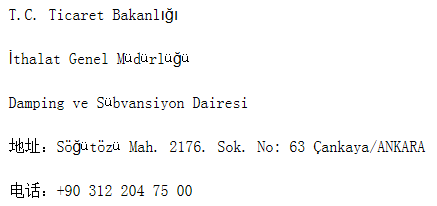 土耳其境外企業(yè)、協(xié)會(huì)組織的聯(lián)絡(luò)郵箱:ithebys@ticaret.gov.tr
